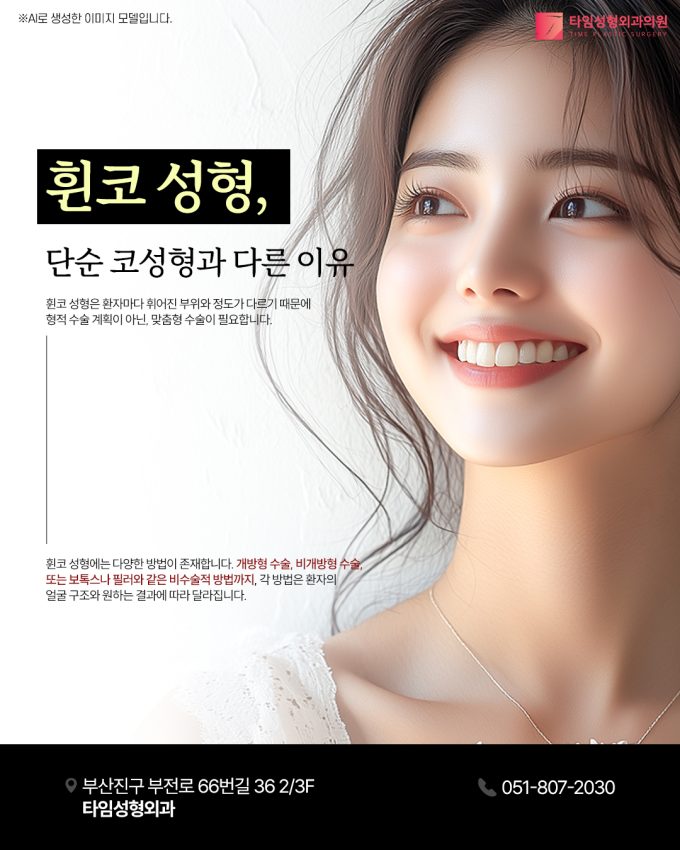 우리는 흔히 코성형이라고 하면 오똑한 코끝, 매끄럽게 이어지는 콧대 등 외형적인 아름다움을 떠올립니다. 하지만 부산서면휜코성형은 조금다릅니다. 겉모습만 다듬는 미용 목적의 성형에서 나아가 구조적인...