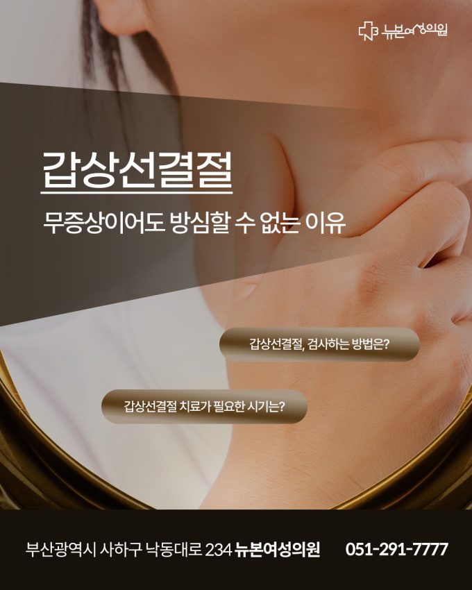 제공자ㅣ뉴본여성의원 갑상선결절은 갑상선 조직 내에 생긴 작은 혹으로, 대부분은 증상이 없어 건강검진이나 초음파를 통해 우연히 발견되는 경우가 많습니다. 하지만 결절의 크기나 위치에 따라...