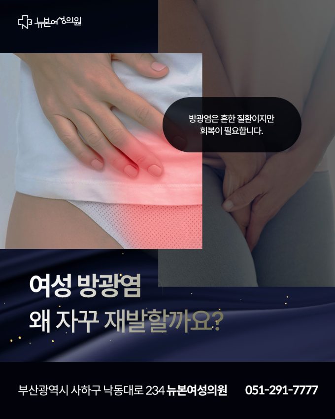 제공자ㅣ뉴본여성의원 방광염은 여성이라면 한 번쯤 겪을 수 있는 흔한 질환이지만, 그만큼 반복되기 쉽고 불편감도 큽니다. 특히 여성은 요도가 짧고 항문과 가까운 구조적 특성상...
