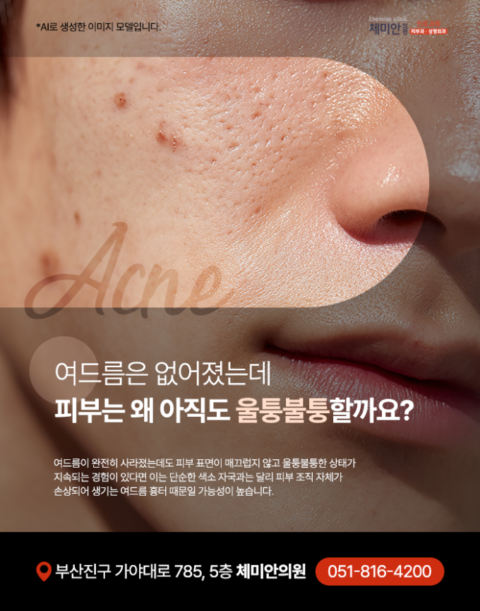 여드름 자체는 염증성 병변이 해소되면서 자극이 사라지지만, 그 흔적이 남는 경우가 적지 않습니다. 특히 표면이 불규칙해지고 패인 듯한 피부상태가 지속된다면 이는 단순한 색소침착이...