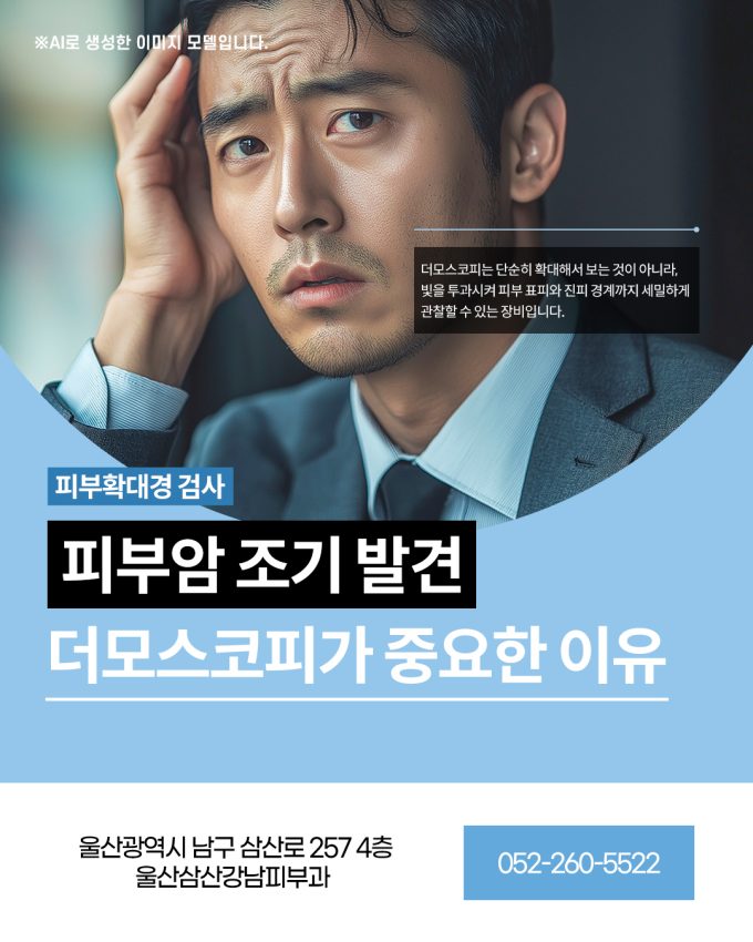 피부암은 초기에는 거의 증상이 없고, 겉으로 보기에도 평범한 점이나 모반과 구분이 어렵습니다. 때문에 조기 발견이 무엇보다 중요하며 피부 확대경인 더모스코피(Dermatoscopy) 검사가 큰 역할을...
