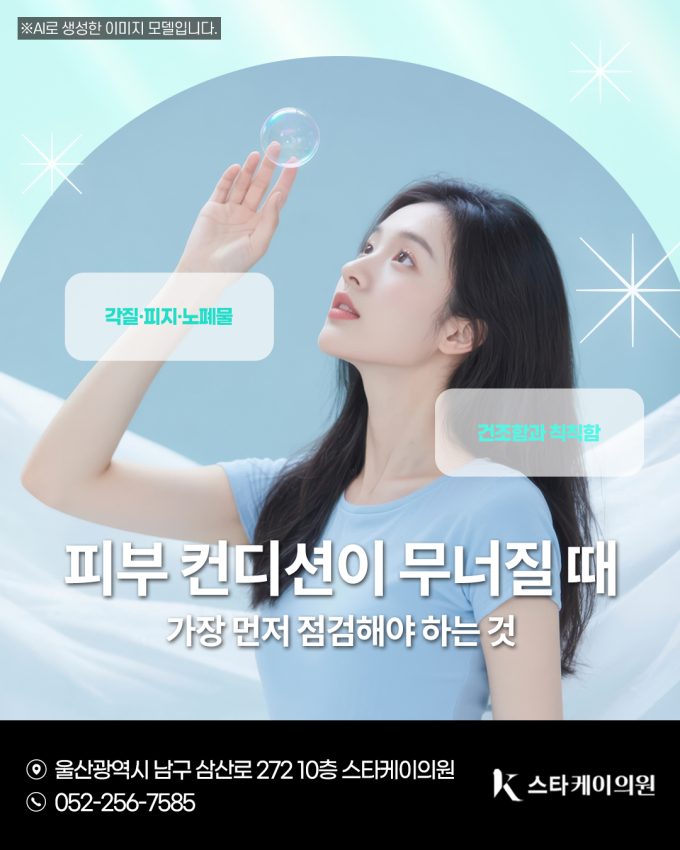 안녕하세요. 스타케이의원이에요 🙂 최근 들어 피부 결이 거칠어지고, 소위 ‘화장이 뜬다’는 느낌이 자주 들었다면 단순히 수분 부족 때문만은 아닐 수 있습니다. 피부는 일정한...