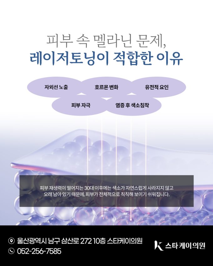 피부가 칙칙하거나 얼룩덜룩해 보일 때 단순한 피부 톤 문제라고 생각하기 쉽습니다. 하지만 이는 멜라닌이라는 색소가 비정상적으로 많이 생기거나 제대로 배출되지 않아 쌓인 결과일...