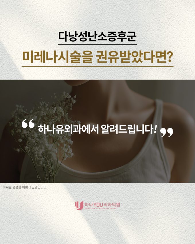 출처 : 서면미레나산부인과, 하나유외과(산부인과전문의 진료) 다낭성난소증후군, 미레나가 항상 답일까요? 다낭성난소증후군(PCOS)은 가임기 여성에게 흔히 나타나는 호르몬 질환으로, 배란 장애와 호르몬 불균형이 복합적으로 작용합니다. 대표적인...