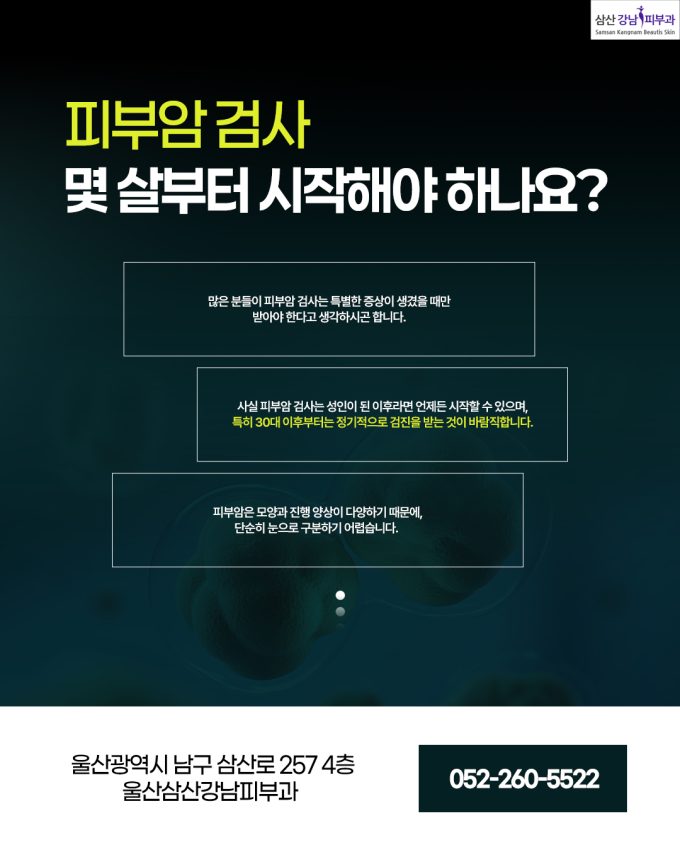 피부암은 조기 발견이 무엇보다 중요한 질환 중 하나입니다. 하지만 많은 분들이 피부암 검사는 특별한 증상이 생겼을 때만 받아야 한다고 생각하시곤 합니다. 사실 피부암...