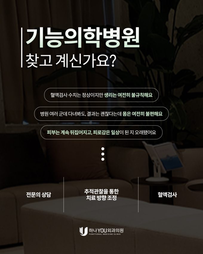 기능의학병원을 찾고 계신가요? 부산기능의학병원 하나유외과에서 기능의학에 대해 알려드릴게요! <병원 여러 군데 다녀봐도 결과는 괜찮다는데 몸은 여전히 불편해요> 우리가 흔히 듣는 말입니다. 혈액검사 수치는...