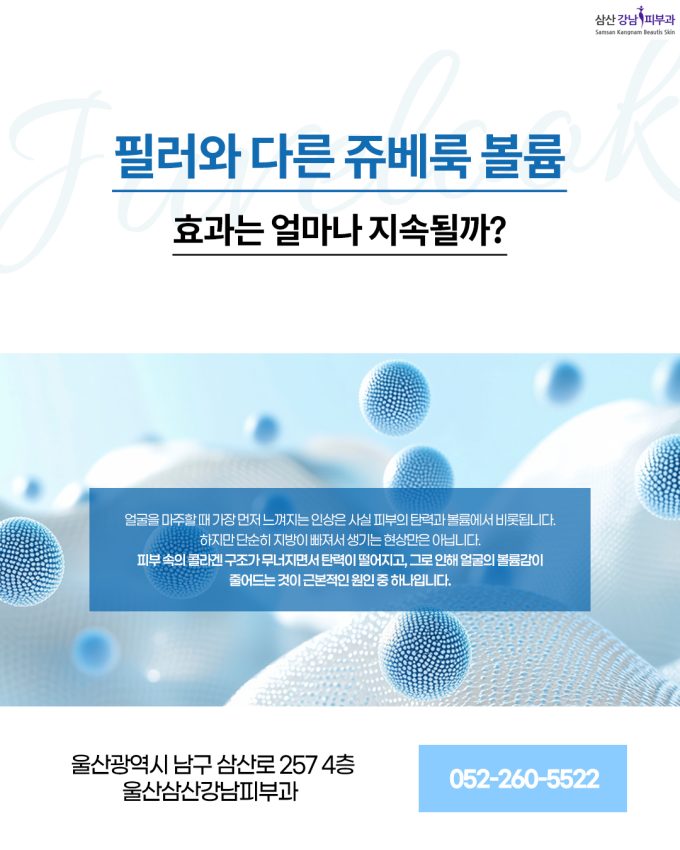 안녕하세요. 울산 삼산강남피부과입니다. 얼굴을 마주할 때 가장 먼저 느껴지는 인상은 사실 피부의 탄력과 볼륨에서 비롯되기도 합니다. 나이가 들수록 피부가 얇아지고 볼살이 줄어드는 것...