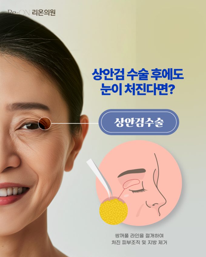 상안검 수술 후에도 눈이 처진다면? 상안검 수술은 주로 노화로 인해 늘어진 눈꺼풀 피부를 절제하고, 눈뜨는 기능과 시야를 개선하는 데 목적이 있습니다. 하지만 일부...