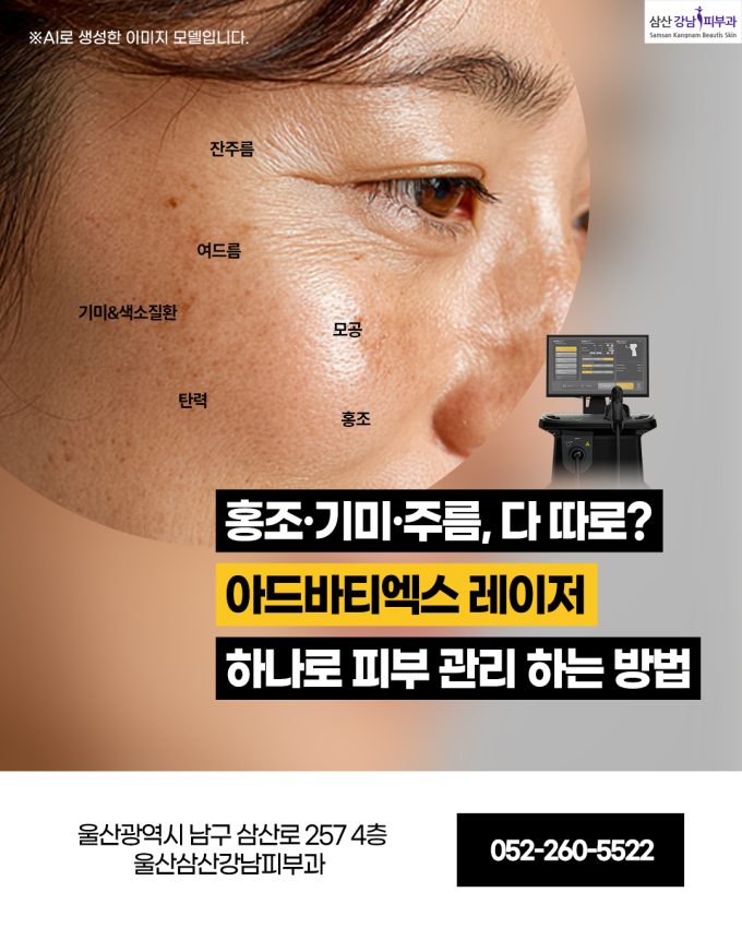 홍조·기미·주름, 다 따로? 이제는 아드바티엑스 레이저 하나로! 출처 : 울산삼산강남피부과 최근 울산삼산동피부과 시술의 흐름은 빠르게 변화하고 있습니다. 예전에는 홍조는 혈관레이저, 기미는 색소레이저, 잔주름은...