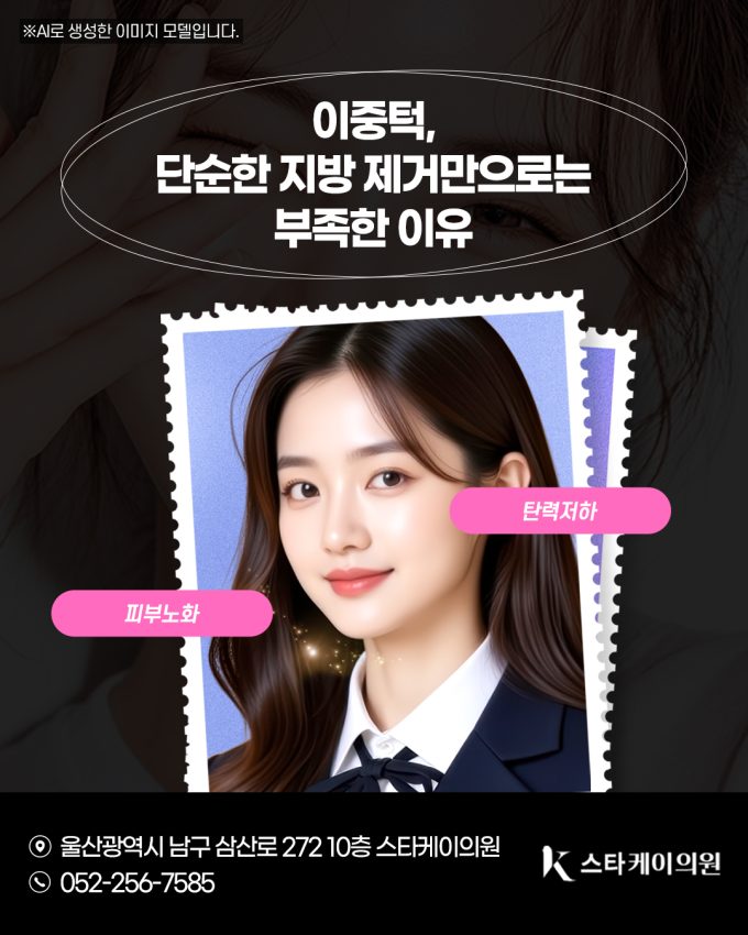 안녕하세요. 울산스타케이의원입니다. 이중턱은 단순히 체중 문제로만 생기지 않습니다. 턱선과 목선 사이의 경계가 모호해지면서 인상이 둔해 보이고, 얼굴이 커 보이는 인상을 주기도 하죠. 특히...