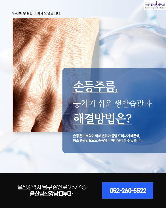 안녕하세요. 울산 삼산 강남피부과입니다. 손등은 얼굴보다 피부가 얇고 피하지방층이 적어 작은 변화도 금방 겉으로 드러나는 부위입니다. 하루 종일 외부에 노출되고 자외선·마찰·건조 환경을 반복적으로...