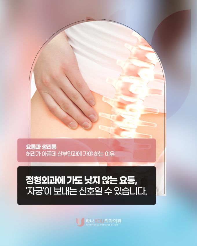 “정형외과에 가도 낫지 않는 요통이라면, 몸이 다른 신호를 보내고 있는 것일 수도 있습니다.” 생리 기간만 되면 유독 허리가 아파지는 분들이 계십니다. 이럴 때...