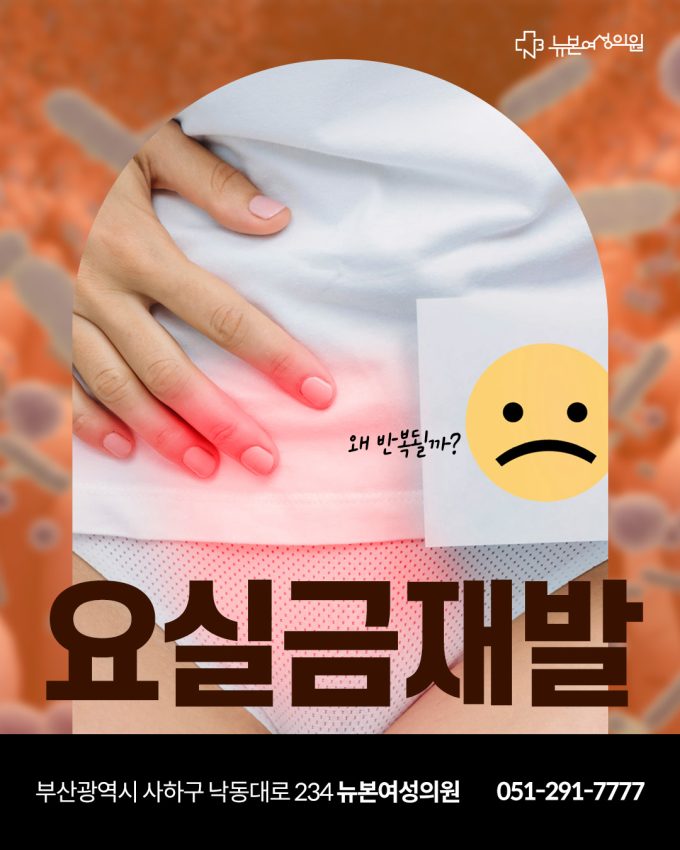 안녕하세요 부산 사하구 뉴본여성의원입니다.오늘은 요실금 재발과 관련해서 알아보려고 합니다.요실금은 나이와 관계없이 여성들이 흔히 겪는 배뇨 불편 증상 중 하나입니다.처음에는 대수롭지 않게 넘기지만,빈도와 강도가...
