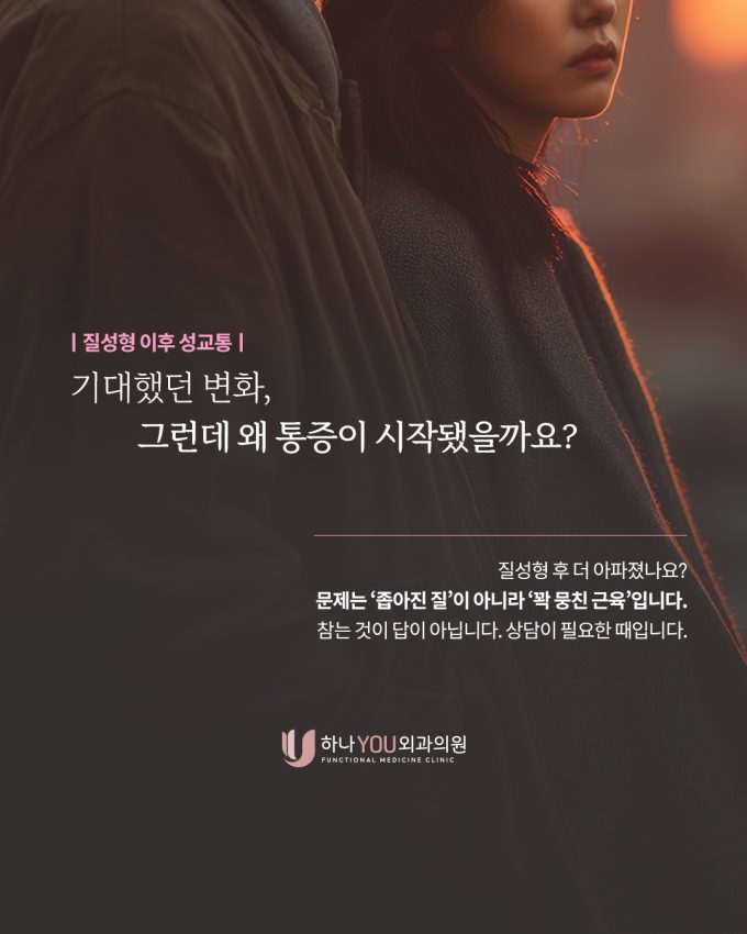 질성형 후 더 아파졌나요? 문제는 ‘좁아진 질’이 아니라꽉 뭉친 근육입니다. 질 성형, 이른바 이쁜이 수술은관계 시 만족도 개선과 자신감 회복을 기대하며선택하는 경우가 많습니다....