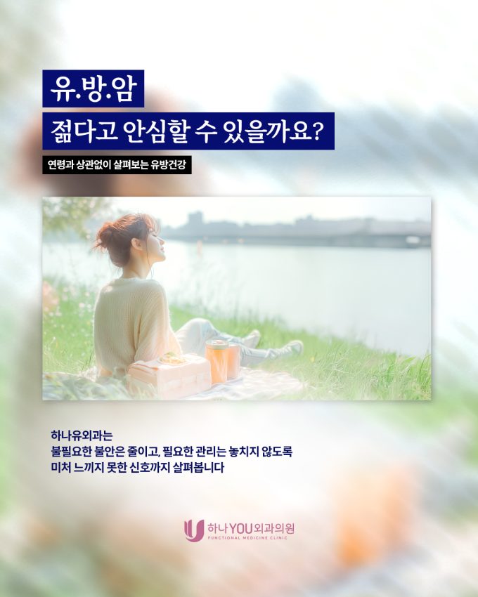 연령과 상관없이 유방검진이 중요한 이유 하나유외과가 알려드릴게요! 최근 여성분들의 일상은 과거보다 훨씬 빠르고 불규칙해졌습니다. 식사 시간이 일정하지 않거나 수면의 질이 떨어지는 날이 반복되면서,...