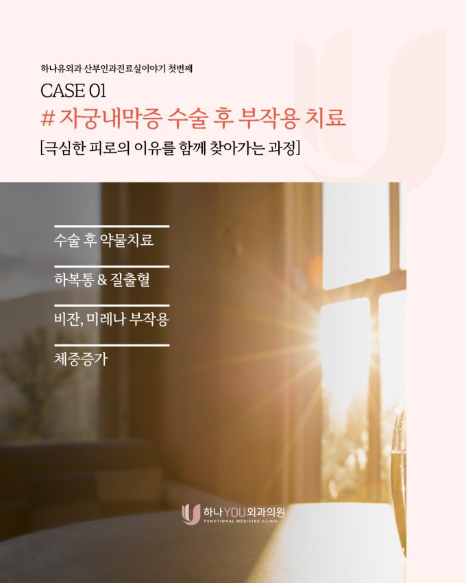 하나유외과 산부인과진료실이야기 안녕하세요? 하나유외과 서면여의사산부인과 전문의입니다 🙂 오늘은 진료실에서 만난 한 분의 이야기를 해드리려고 해요. 자궁내막증 수술 이후에도 컨디션 난조와 극심한 피로를 호소하는...