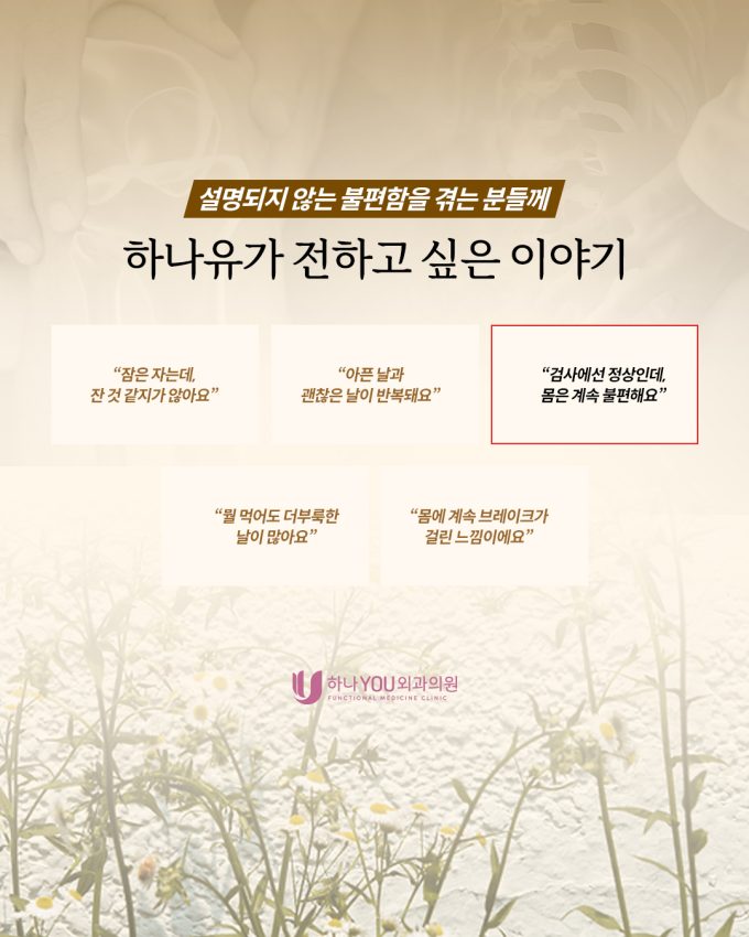 검사는 정상이라는데.. 몸은 왜 이렇게 힘들까요? 건강검진을 받아보면 늘 “큰 이상 없다”는 말을 듣지만, 정작 일상은 예전 같지 않은 분들이 많습니다. 아침에 눈을...