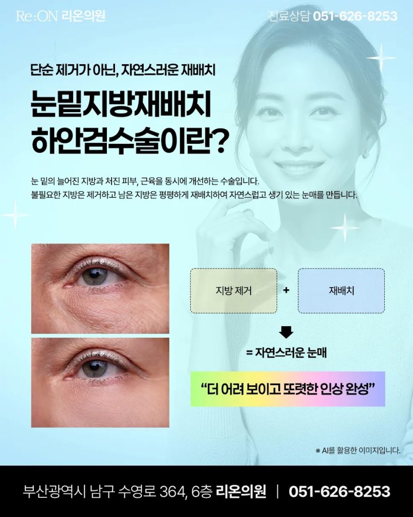 경성대눈밑지방재배치 눈밑노화 개선,하안검수술로 리온에서 되찾다