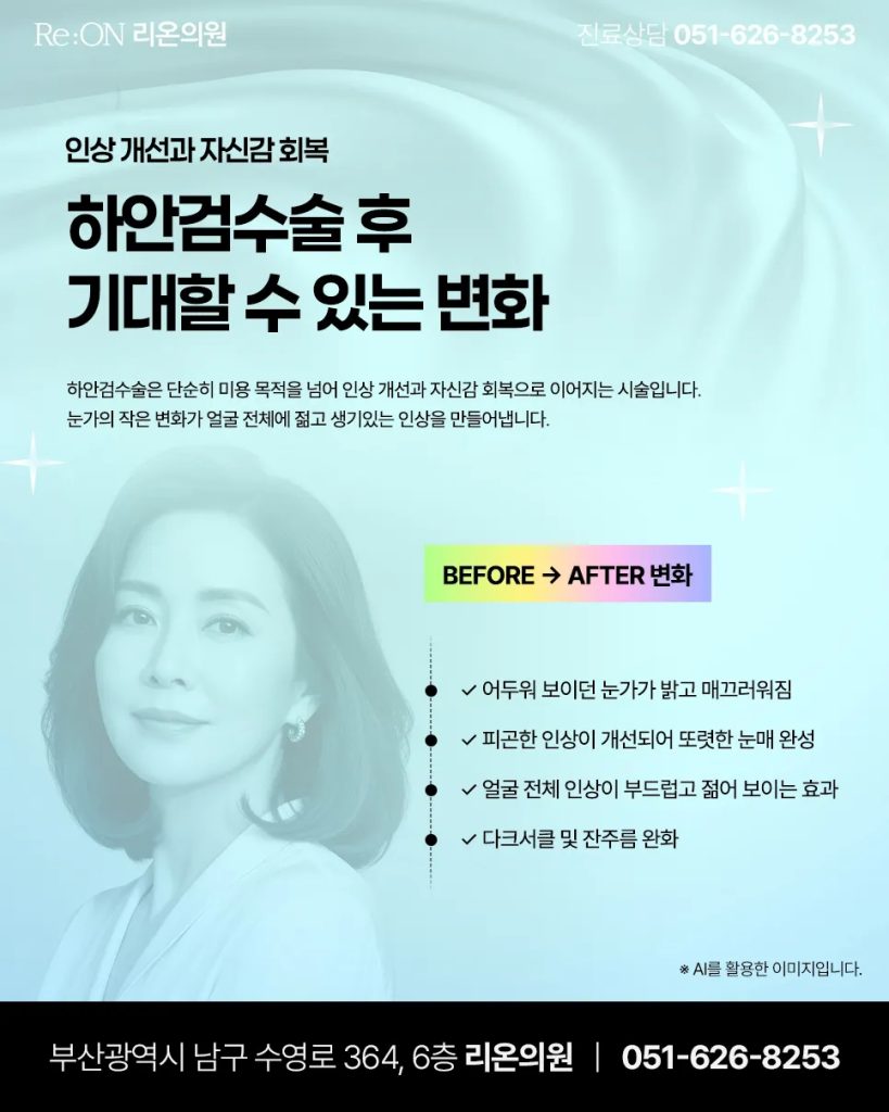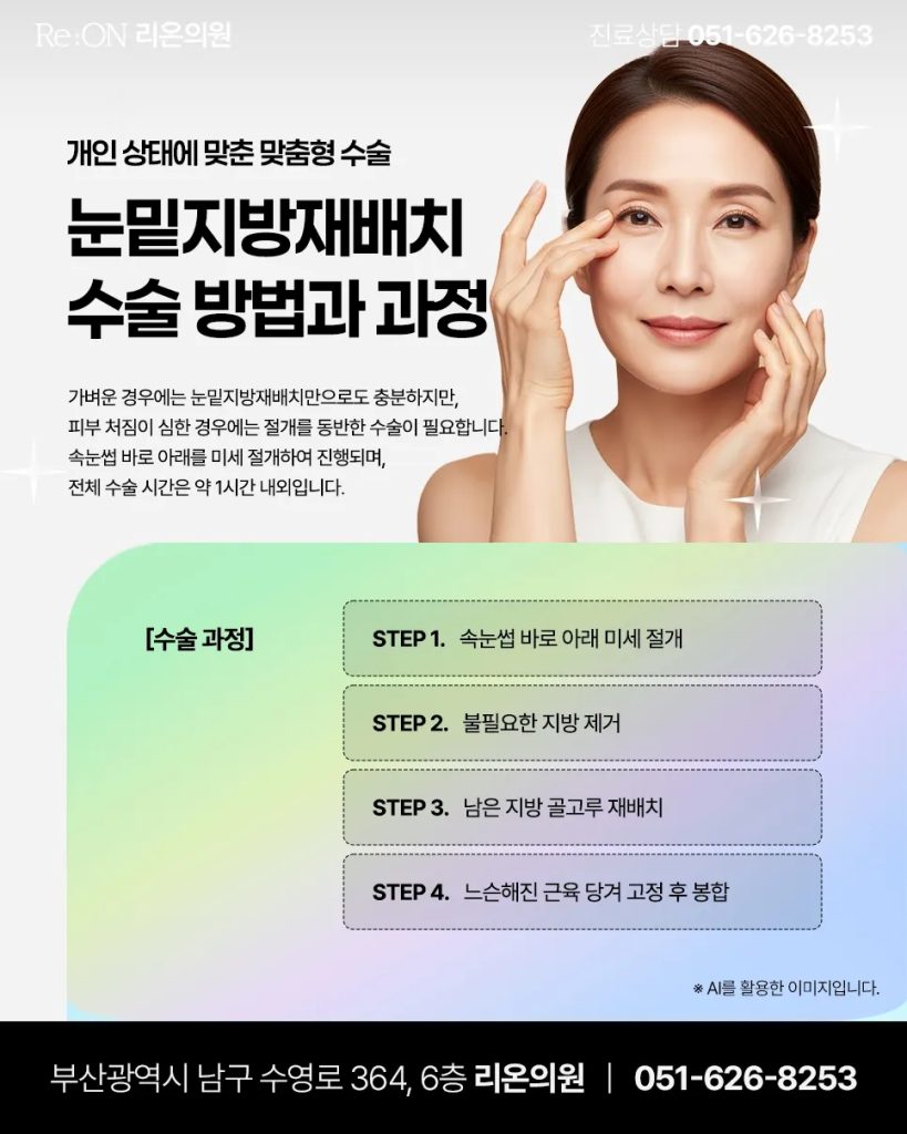 Home 성형외과 경성대눈밑지방재배치 눈밑노화 개선,하안검수술로 리온에서 되찾다