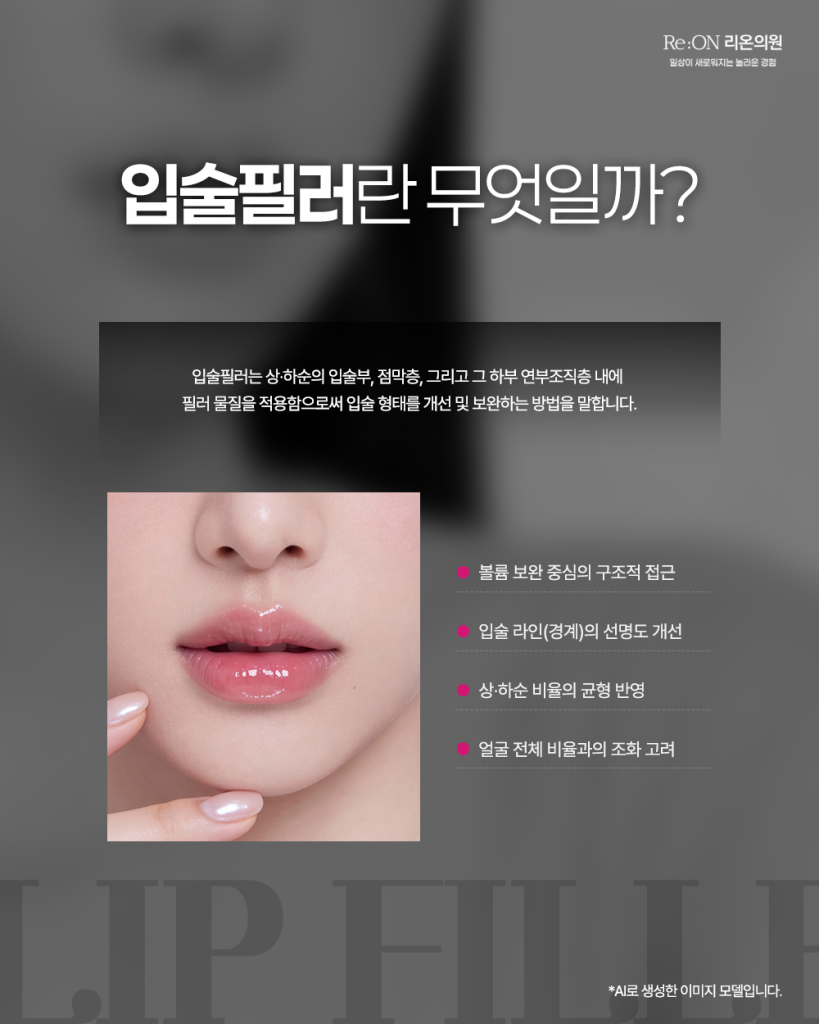 입술은 얼굴의 하안면 중심에 위치하여 전체 인상 형성에 중요한 역할을 하는 부위로 미세한 형태 변화만으로도 시각적 분위기와 이미지 전달에 큰 영향을 미치는 특징을 가지고 있습니다.