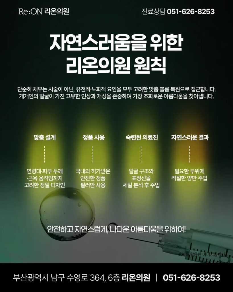 볼륨이 줄어드는 변화가 자연스럽게 찾아옵니다.따라서 리온의원에서는 단순히 채워 넣는 시술이 아니라