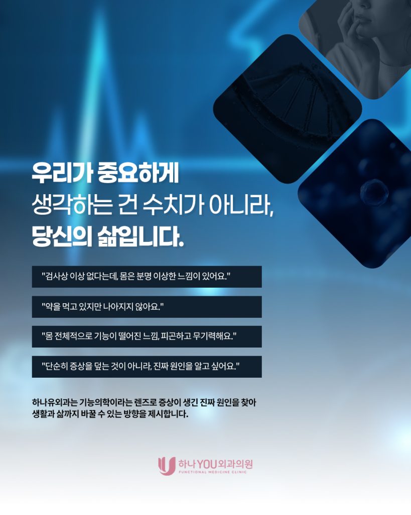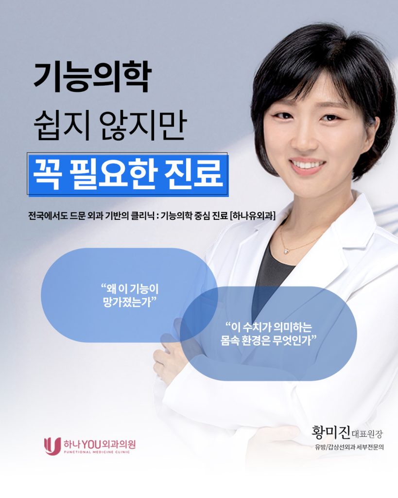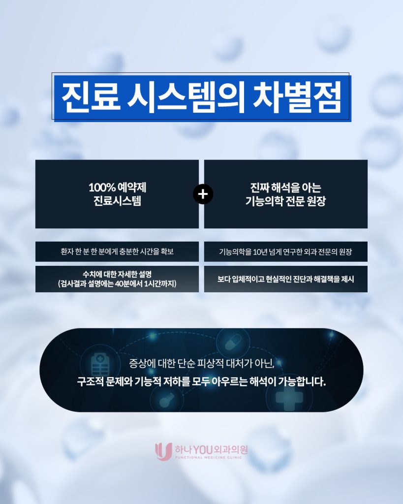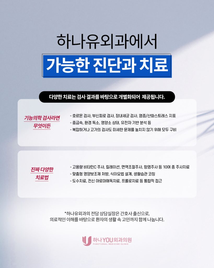 하나유외과는 기능의학 중심 진료를 시행하는 전국에서도 드문 외과 기반의 클리닉입니다.