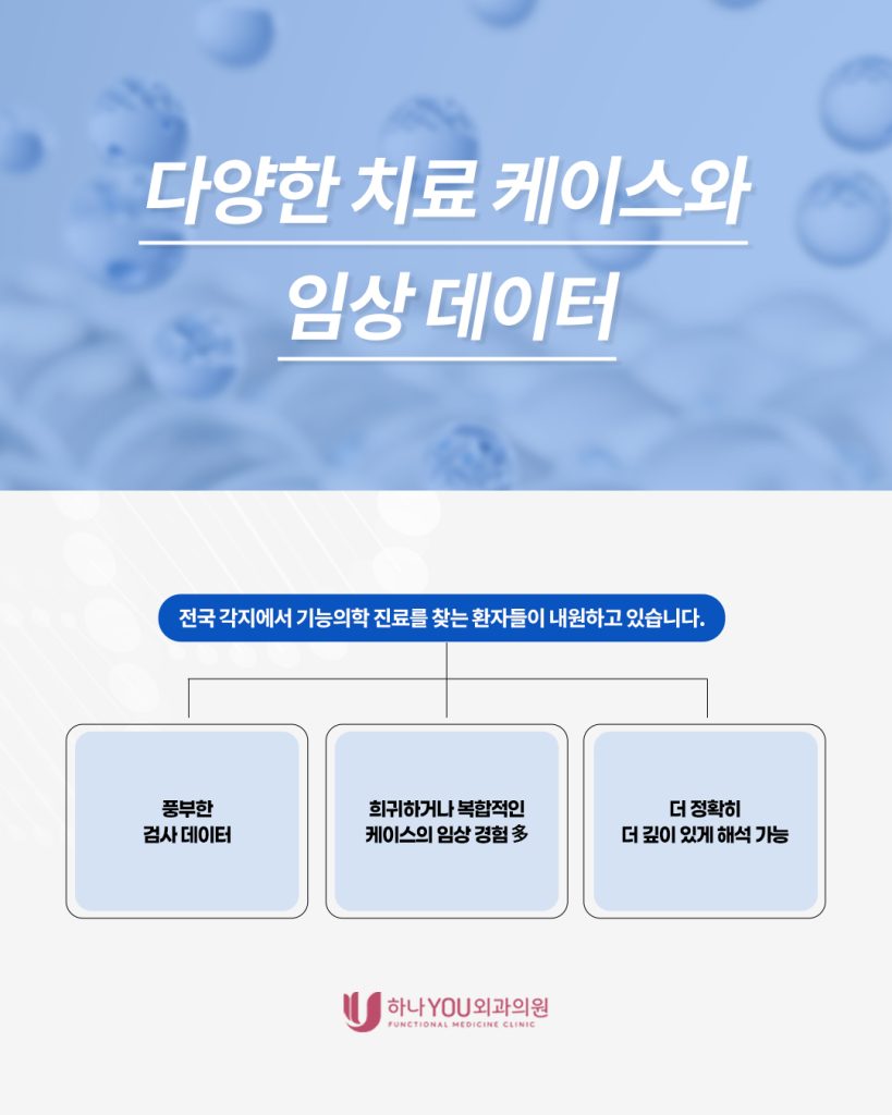 이것은 단순한 경험의 양이 아니라, 개인의 몸 상태를 이해하고 분석하는 데 매우 중요한 자산이 됩니다. 오랜 기능의학병원비용 데이터와 임상 경험은, 환자의 현재 상태를 더 정확히, 더 깊이 있게 해석할 수 있는 힘이 됩니다.