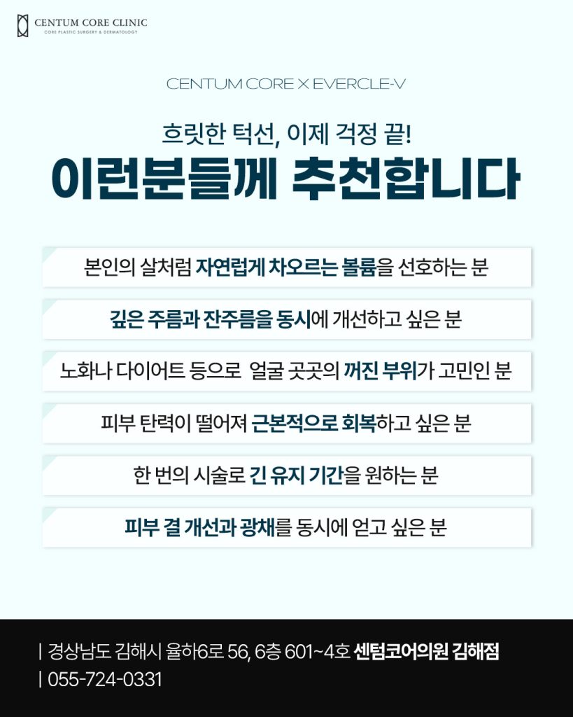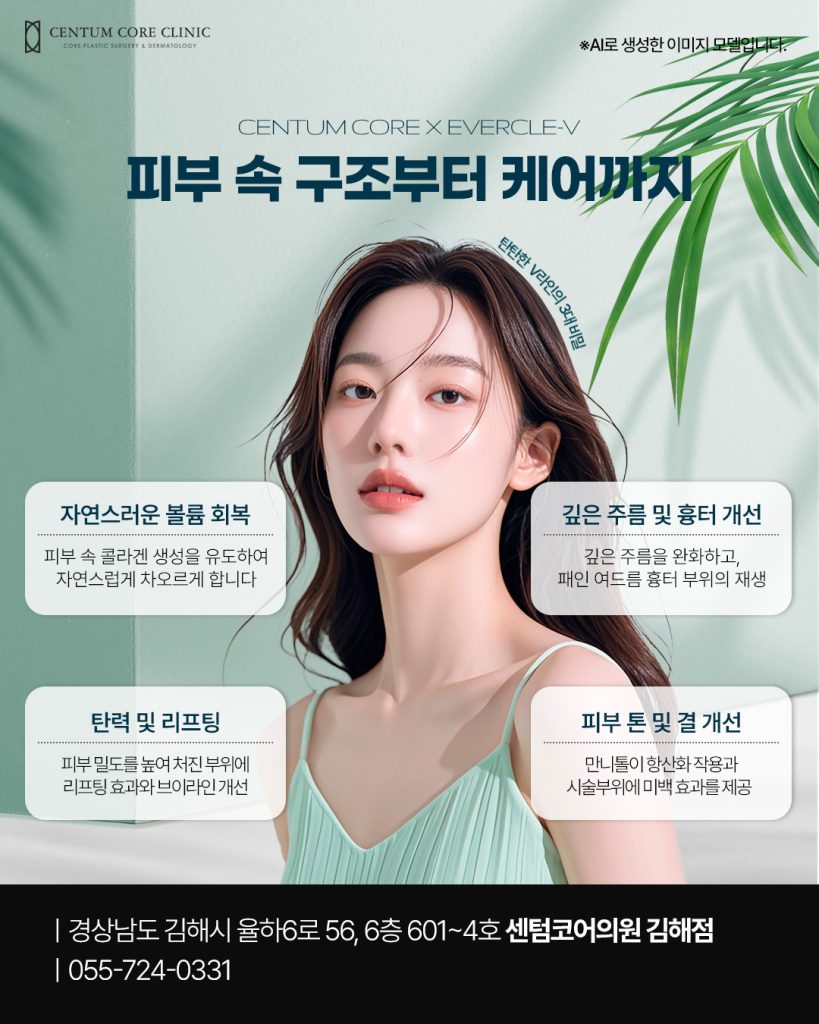 김해에버클v시술은 피부 진피층에 작용하여 피부 속 콜라겐 생성을 돕고,자연스러운 얼굴 볼륨과 탄력을 회복하는데 도움을 줍니다.