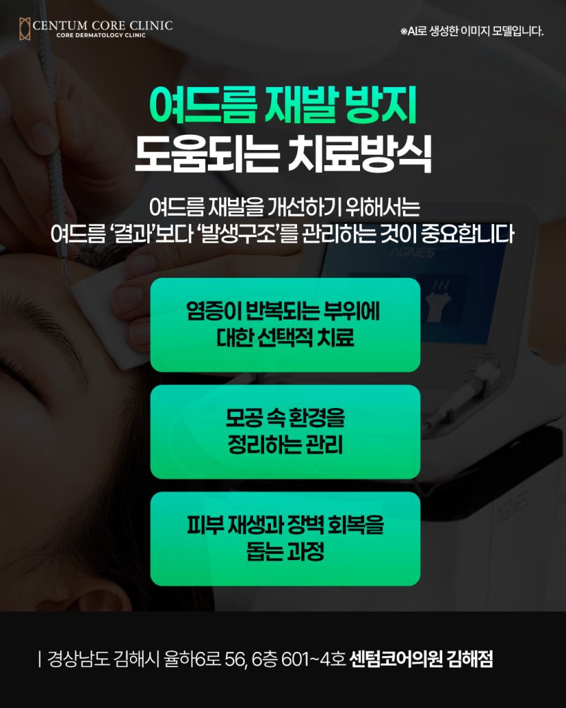 여드름 재발을 줄이기 위해서는 시술 자체뿐 아니라 관리도 중요합니다.
