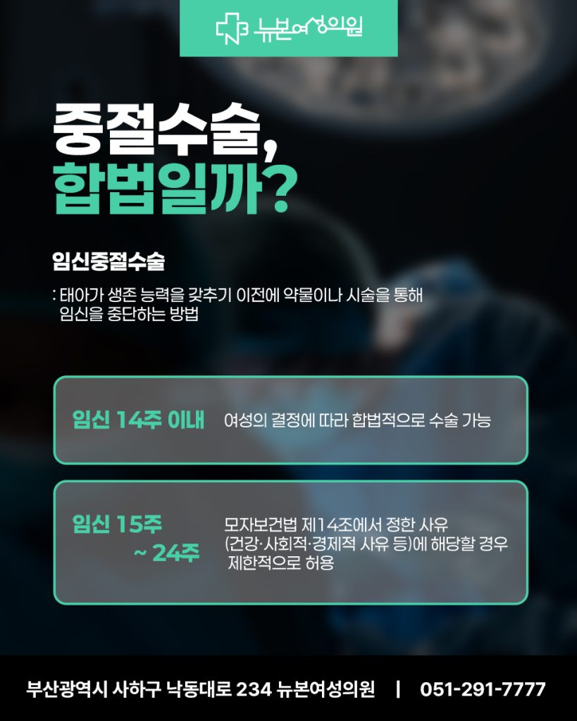 설령 법적으로 허용된다 하더라도, 수술은 여성에게 큰 신체적·정신적 부담이 됩니다. 무엇보다 중요한 것은 임신 자체를 예방하는 것, 즉 올바른 피임입니다.