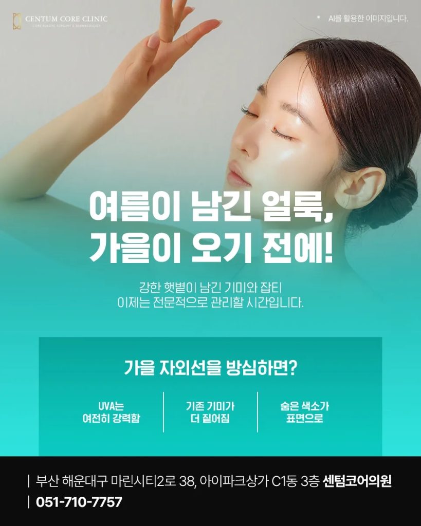 여름철 강한 햇볕은 즐거운 추억과 함께 원치 않는 흔적을 남깁니다. 대표적인 것이 바로 기미와 주근깨 같은 색소 문제입니다. 특히 가을이 되면 햇볕이 약해졌다고 방심하기 쉽지만, 피부 깊숙이 침투하는 UVA 자외선은 여전히 강력합니다. 이를 간과하면 이미 생긴 기미는 더욱 짙어지고, 숨어 있던 색소가 표면으로 드러나 피부 톤을 흐리게 만들 수 있습니다. 마린시티피부과 센텀코어의원은 이런 시기에 체계적인 기미 관리가 필요하다고 강조합니다.