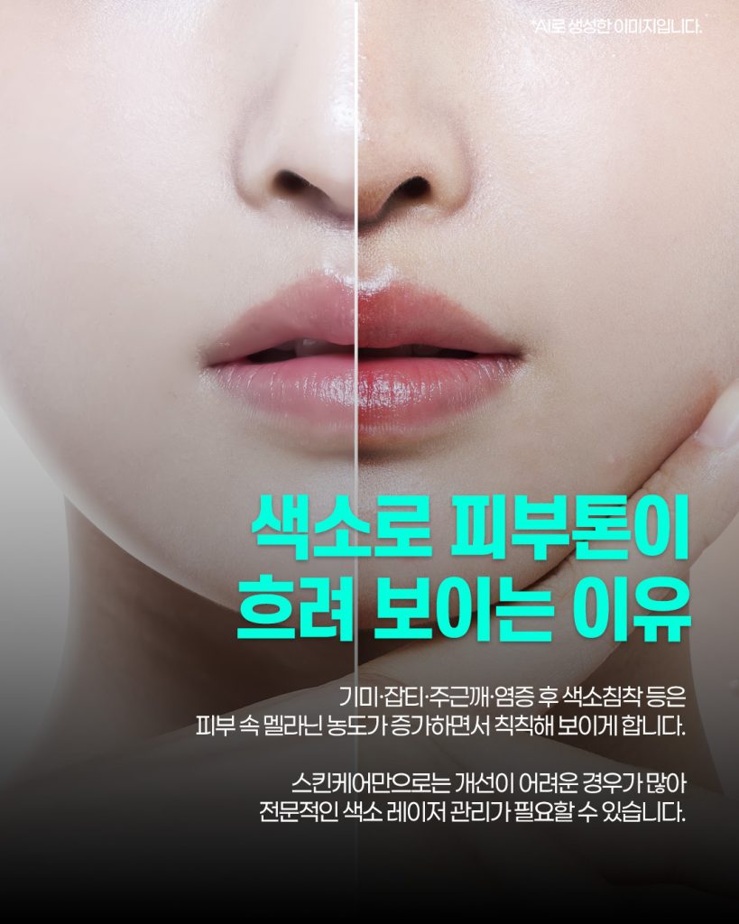 실제보다 나이가 들어 보일 수 있습니다.색소는 자외선,호르몬 변화,피부 염증 이후의 착색 등 다양한 원인으로 발생하며