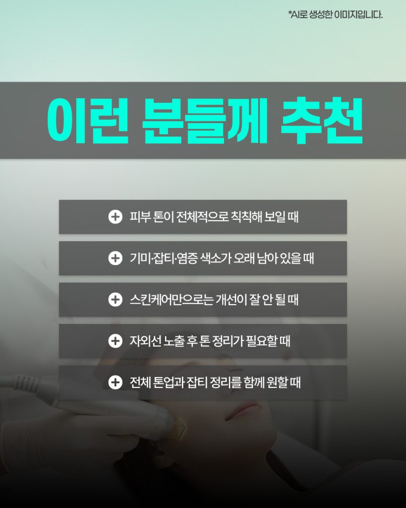 본인의 피부 특성을 정확히 이해해고 안전하게 진행할 수 있는지 충분한 상담을 받아보는 것이 가장 중요합니다.