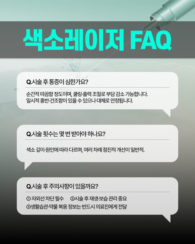 레이저 종류와 강도는 달라질 수 있으므로,시술 전 정확한 진단과 상담이 필수적입니다.
