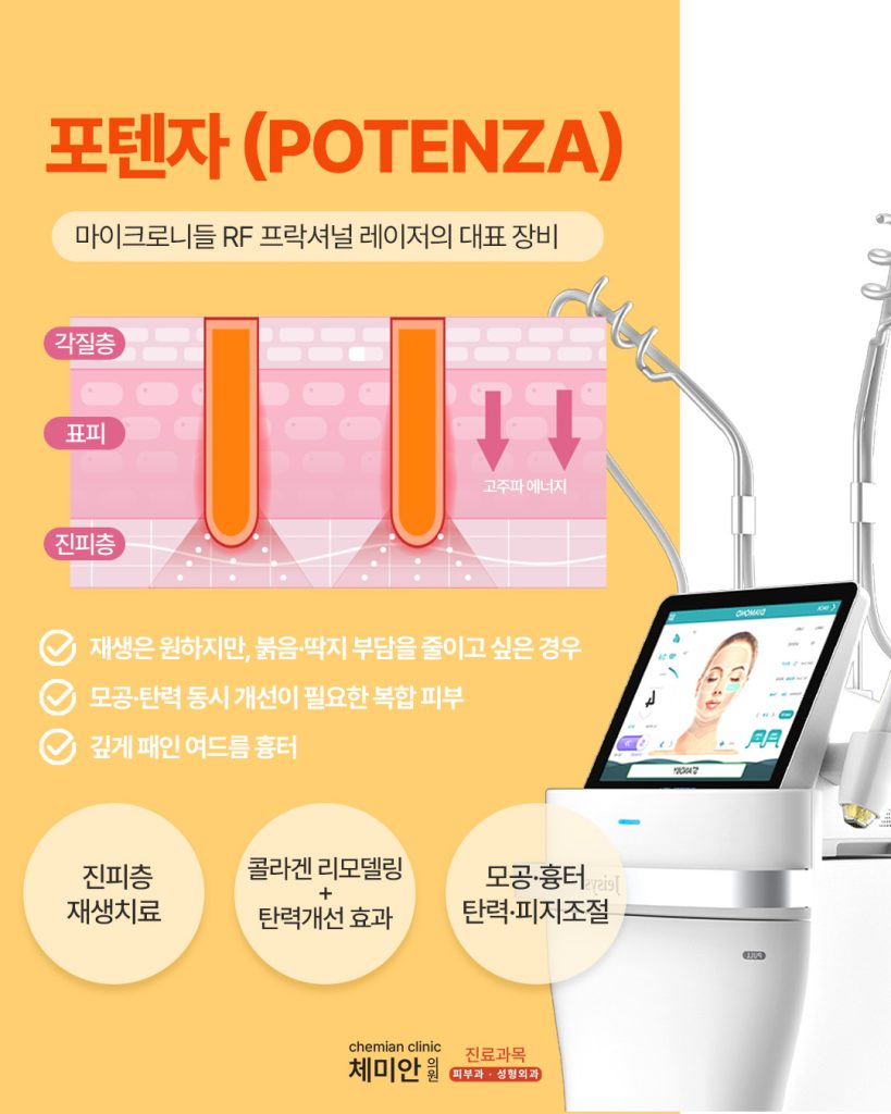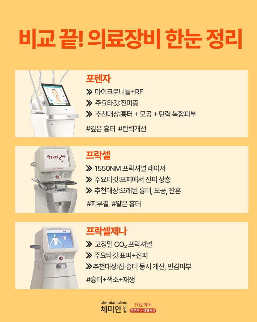 서면체미안의원에서는 대표적인 세 가지 장비,포텐자·프락셀·프락셀 제나를 직접 비교해