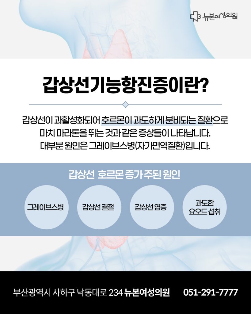 부산갑상선기능항진증은 몸의 대사 속도가 과도하게 빨라지는 상태를 말합니다.