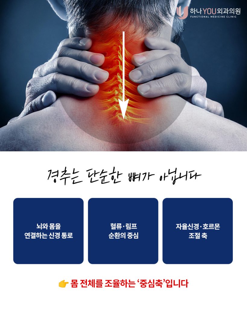 부산기능의학 관점에서 보면 경추에서 시작된 변화는 단순히 목 주변에만 머물지 않습니다.