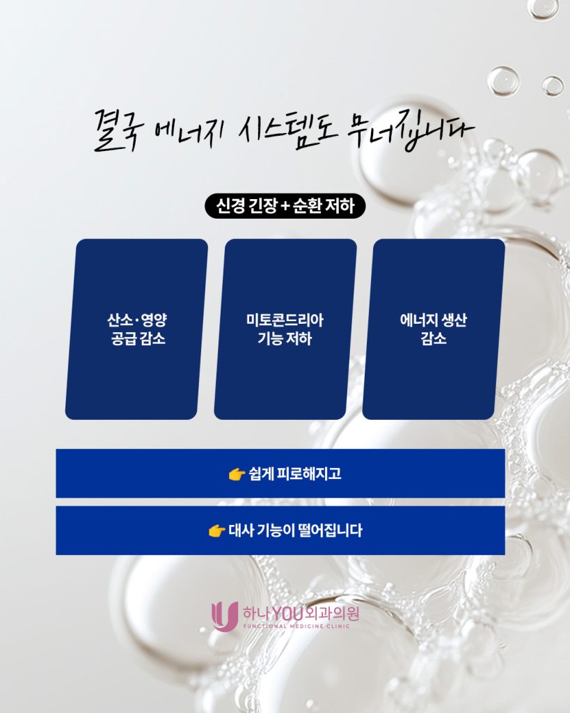 부산기능의학 결과적으로 쉽게 피로를 느끼고, 회복이 느려지며, 일상적인 활동에서도 부담을 느끼는 상태가 반복될 수 있습니다.