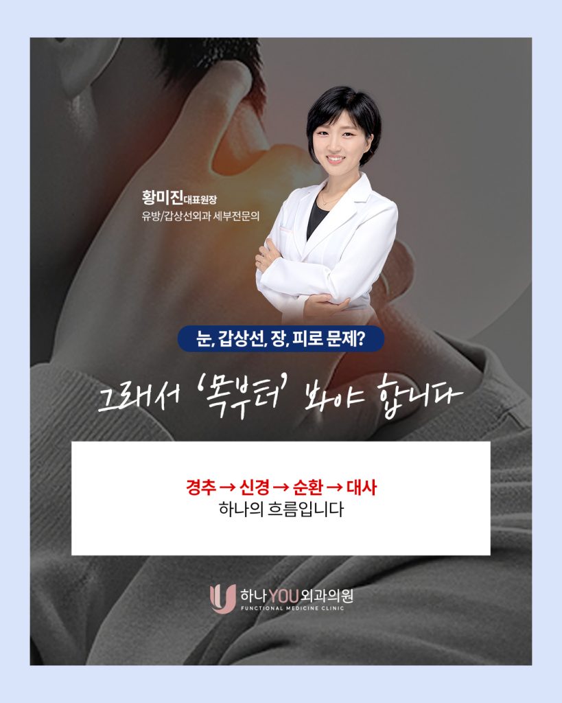 갑상선은 쇄골 아래 깊은 위치로 혈액과 림프가 배출되는 구조를 가지고 있는데, 경추 정렬이 흐트러질 경우 이러한 흐름이 원활하지 못해 호르몬 대사와 노폐물 배출 과정에 부담이 생길 수 있습니다.