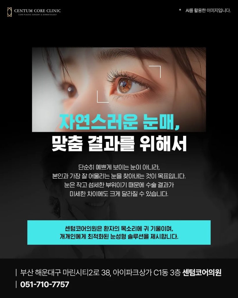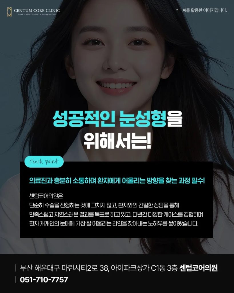 눈성형에서 가장 중요한 것은 단순히 원하는 라인을 이야기하는 것이 아니라, 의료진과 충분히 소통하며 환자에게 어울리는 방향을 찾는 과정입니다. 환자는 본인이 원하는 인상을 설명할 수 있어야 하고, 의료진은 그 설명을 바탕으로 얼굴과 눈 구조에 맞는 최적의 솔루션을 제안해야 합니다. 부산눈성형 센텀코어의원은 단순히 수술을 진행하는 것에 그치지 않고, 환자와의 긴밀한 상담을 통해 만족스럽고 자연스러운 결과를 목표로 하고 있습니다. 센텀코어의원은 다년간 다양한 케이스를 경험하며 환자 개개인의 눈매에 가장 잘 어울리는 라인을 찾아내는 노하우를 쌓아왔습니다. 수술의 목표는 단순히 콤플렉스를 가리는 것이 아니라, 자연스럽게 개선하여 환자 본연의 매력을 극대화하는 것입니다. 특히, 과하지 않으면서도 또렷한 눈매를 원하는 분들께 맞춤형 솔루션을 제공합니다.