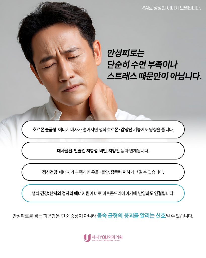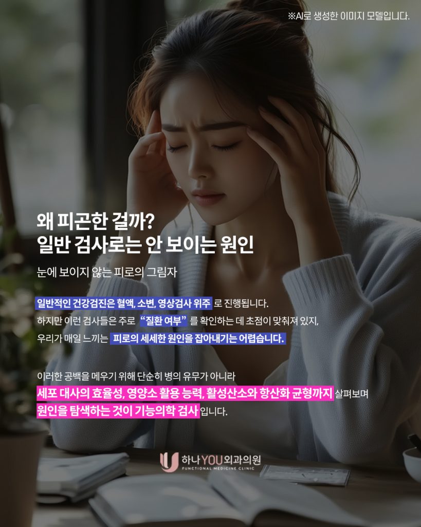 단순한 혈액검사나 영상검사로는 늘어나는 피로의 원인을 설명하기 어려운 경우가 많습니다.