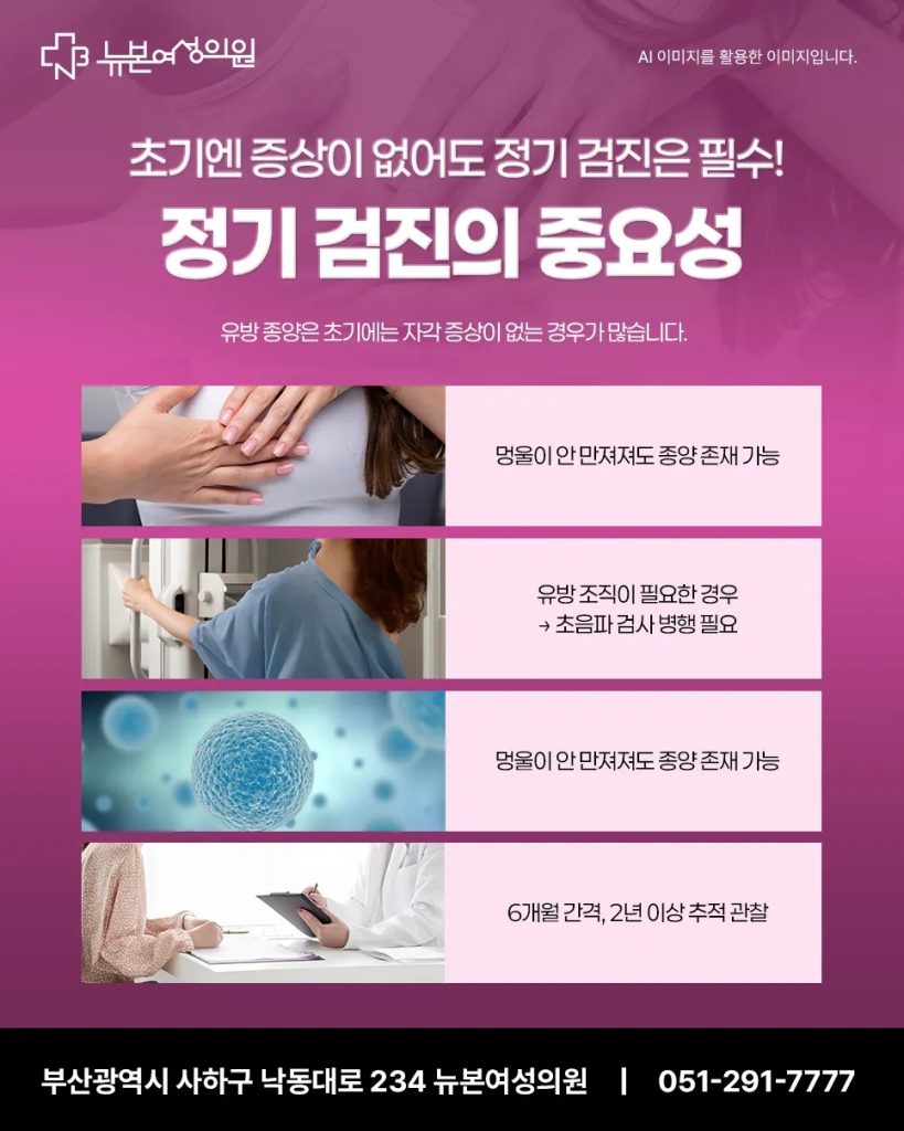 부산맘모톰 유방 양성 종양은 대체로 예후가 좋지만 방치하거나 검진을 소홀히 하면 불필요한 위험을 초래할 수 있습니다. 따라서 증상이 없더라도 정기적으로 검사를 받고, 이상이 발견되면 의료진과 충분히 상의해 가장 적절한 치료법을 선택하는 것이 중요합니다. 뉴본여성의원은 환자의 상황과 건강을 종합적으로 고려하여 맞춤형 진료를 제공하며, 여성들이 보다 안심하고 치료받을 수 있도록 최선을 다하고 있습니다. 작은 멍울이라도 가볍게 여기지 말고 정기 검진을 통해 유방 건강을 지켜 나가시기 바랍니다.