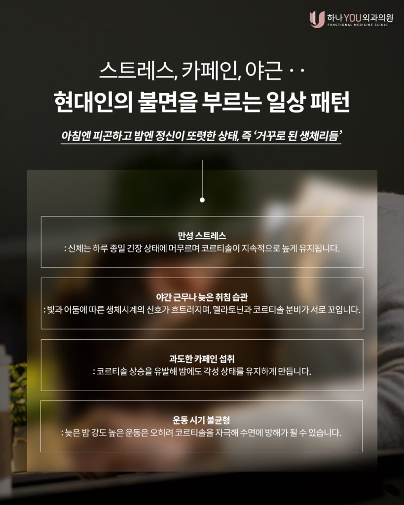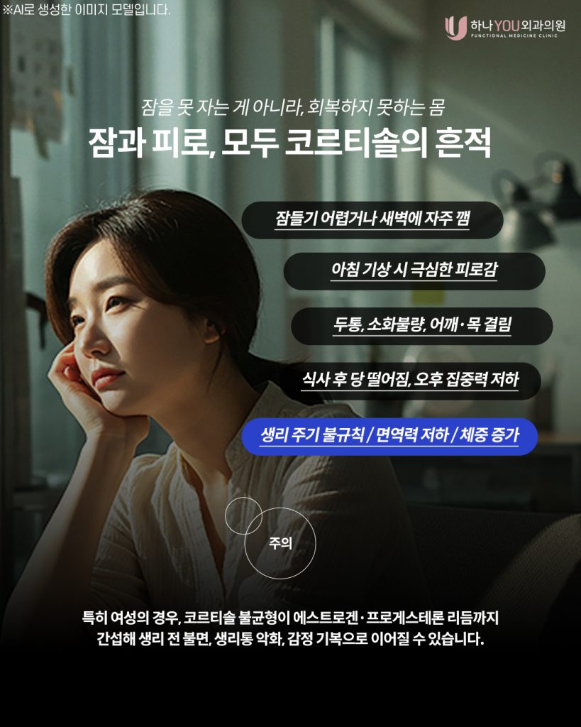 이 글은 의료진의 견해를 바탕으로 작성되었습니다. 수면장애·만성피로·호르몬 이상 증상이 지속된다면 의료진과 상의하시기 바랍니다.