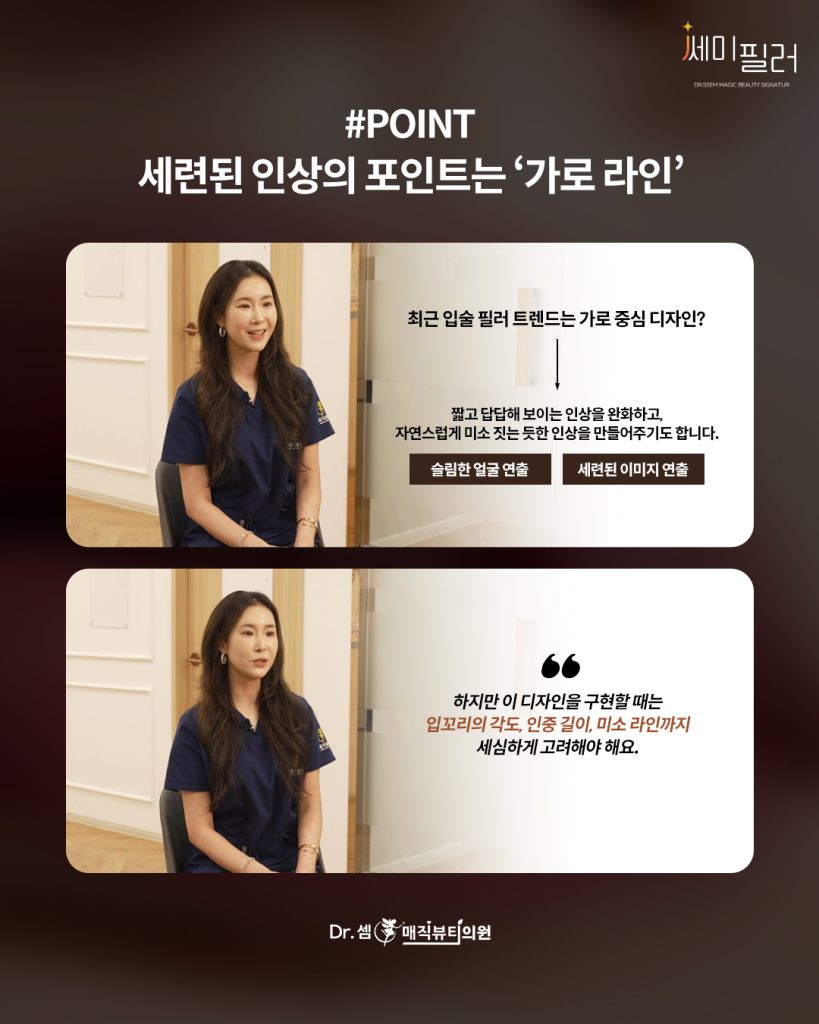 특히 입꼬리까지 부드럽게 이어지는 ‘긴 입술 라인’은 세련된 인상과 자연스러운 미소를 동시에 만들어주는 포인트로 요즘 가장 많이 요청되는 디자인 중 하나예요.