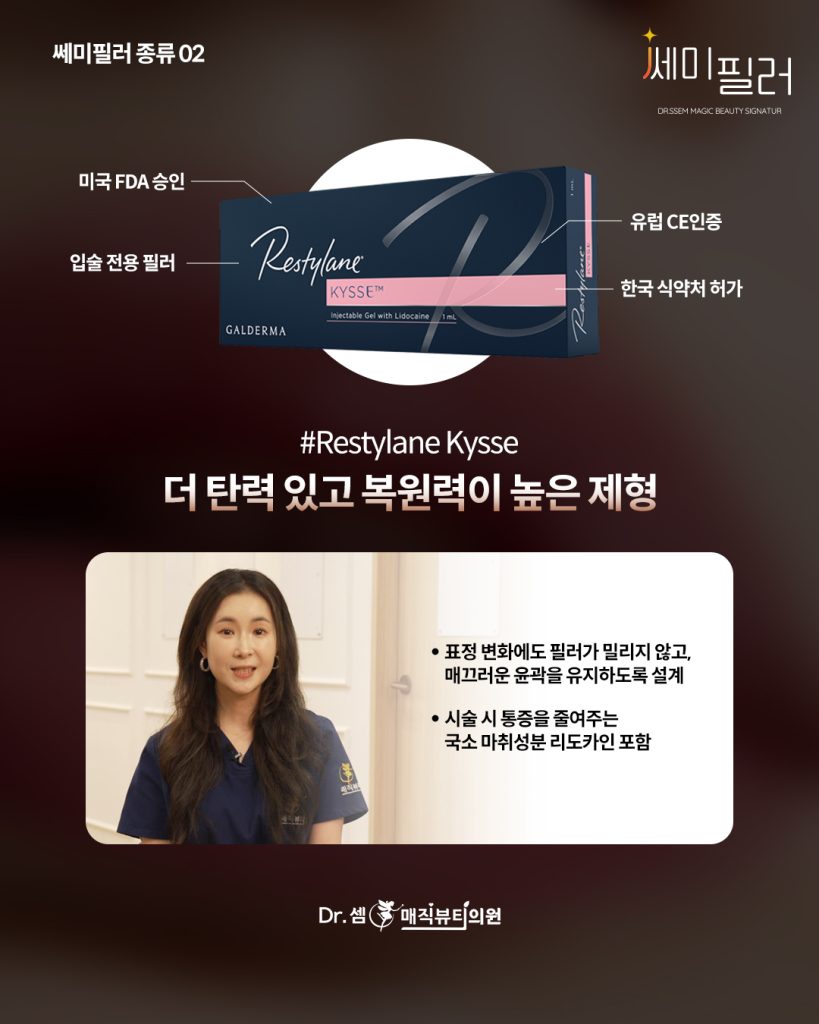 특히 ‘레스틸렌 키스’는 입술 전용으로 개발되어 표정에 따라 필러가 밀리지 않고 매끄럽게 또렷한 라인을 유지하는 특징이 있습니다.