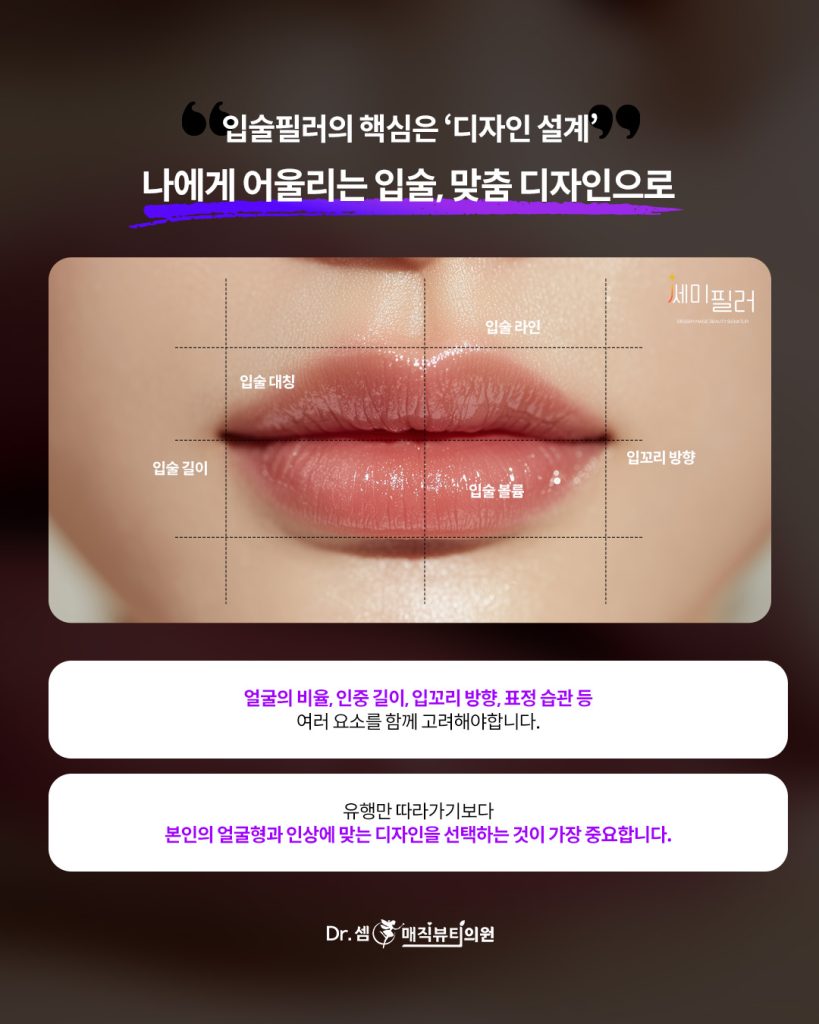 요즘 ‘긴 입술 디자인’이 트렌드이긴 하지만 모든 사람에게 똑같이 어울리진 않아요. 얼굴형, 근육 움직임, 미소 습관에 따라 이상적인 입술의 길이와 라인이 달라지기 때문입니다.