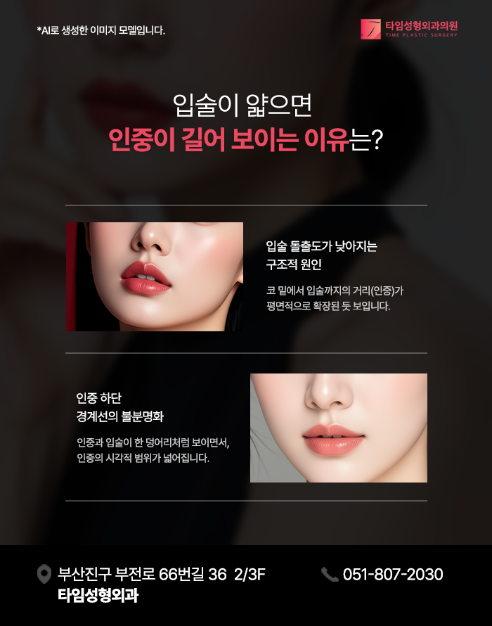 입술이 얇아 보이는 경우, 단순히 입술 자체의 볼륨이 부족해서 생기는 문제로만 생각하기 쉽습니다. 그러나 실제로는 얼굴의 입체적 구조와 연부조직의 비례, 그리고 상악부와 하순부의 관계까지 복합적으로 작용하는 결과입니다. 특히 얇은 입술은 인중이 시각적으로 길어 보이게 만드는 대표적인 요인 중 하나로 작용하기도 합니다.