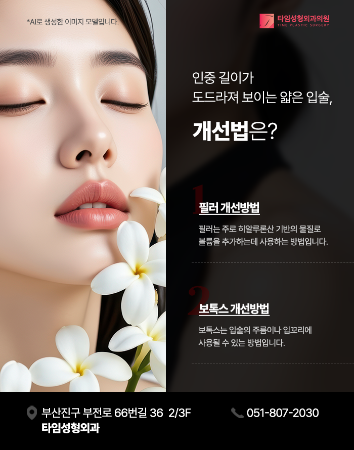 얇은 입술을 개선하기 위해 다양한 접근법이 존재합니다. 필러는 히알루론산과 같은 물질을 사용하여 입술 볼륨을 보강하는 방법으로, 돌출을 증가시키고 경계선을 개선하는데 기여합니다. 이 외에도 보톡스는 입술 주변 근육의 활동성을 조절하여 입술선과 표정 움직임을 보완할 수 있으며, 과도한 근육 수축으로 인한 변형을 개선하는 원리를 가지고 있다는 것이 특징입니다.
