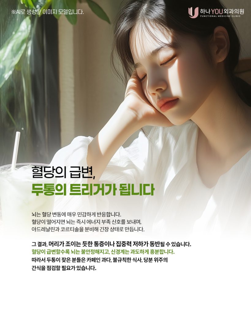 따라서 두통이 잦은 분들은 카페인 과다, 불규칙한 식사, 당분 위주의 간식을 점검할 필요가 있습니다.