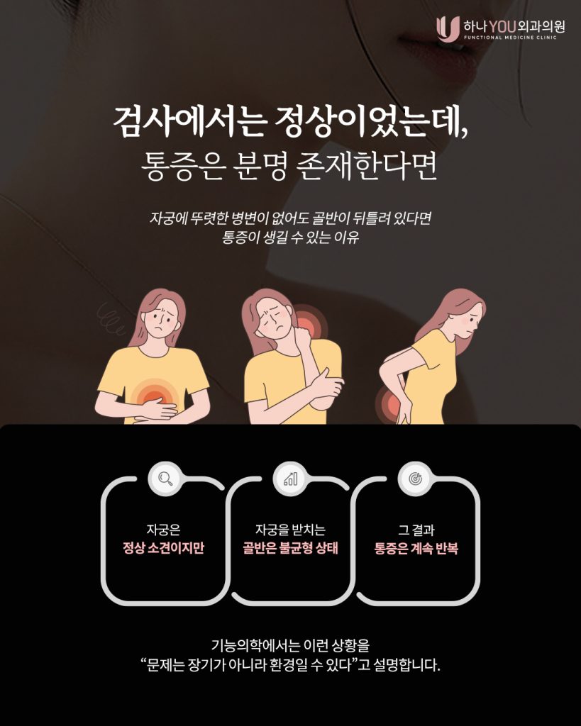 하지만 검사에서는 이상이 없다는 이야기를 들었는데도 통증이 계속된다면 시선을 조금 넓혀 다가갈 필요가 있습니다.